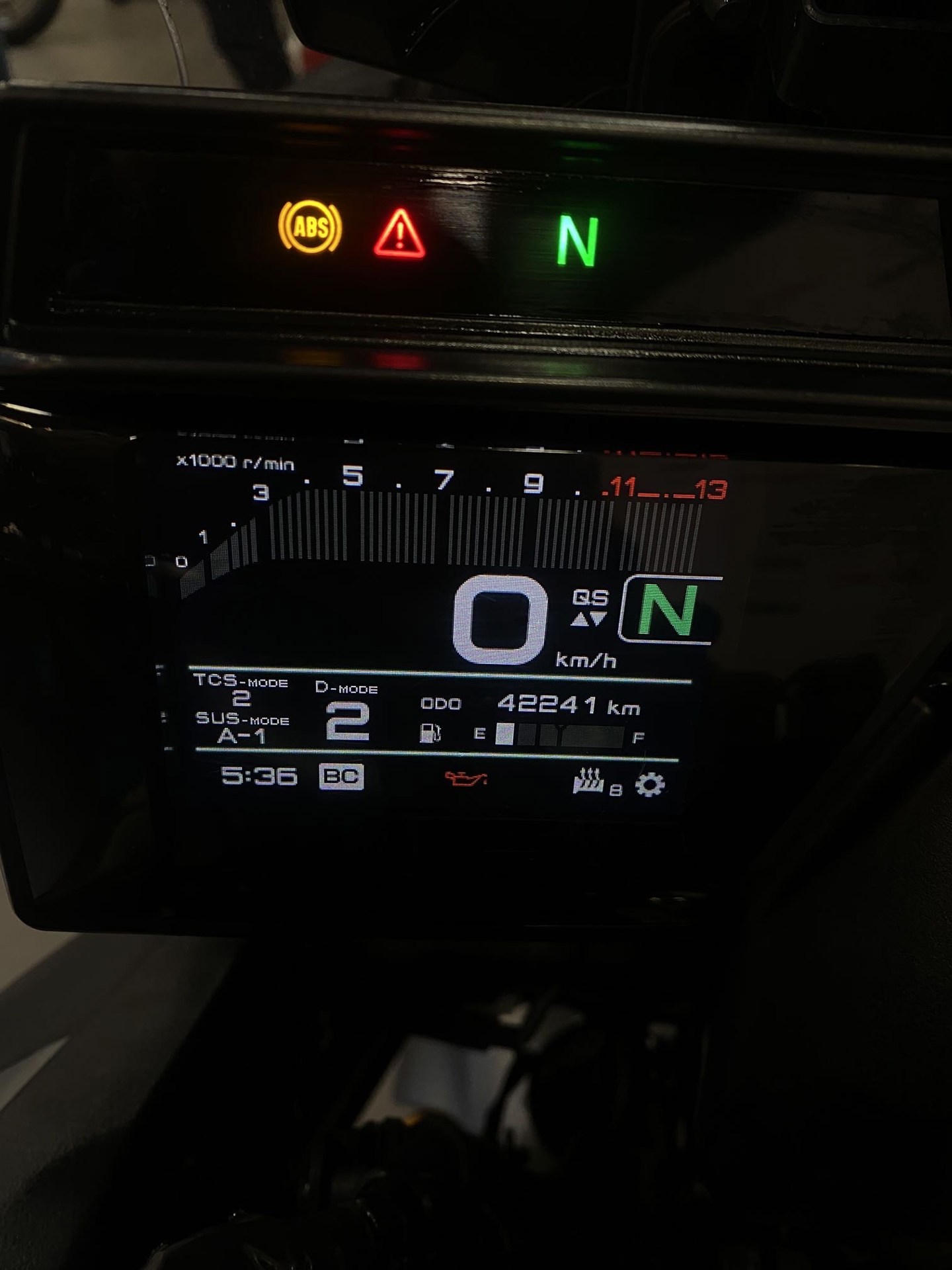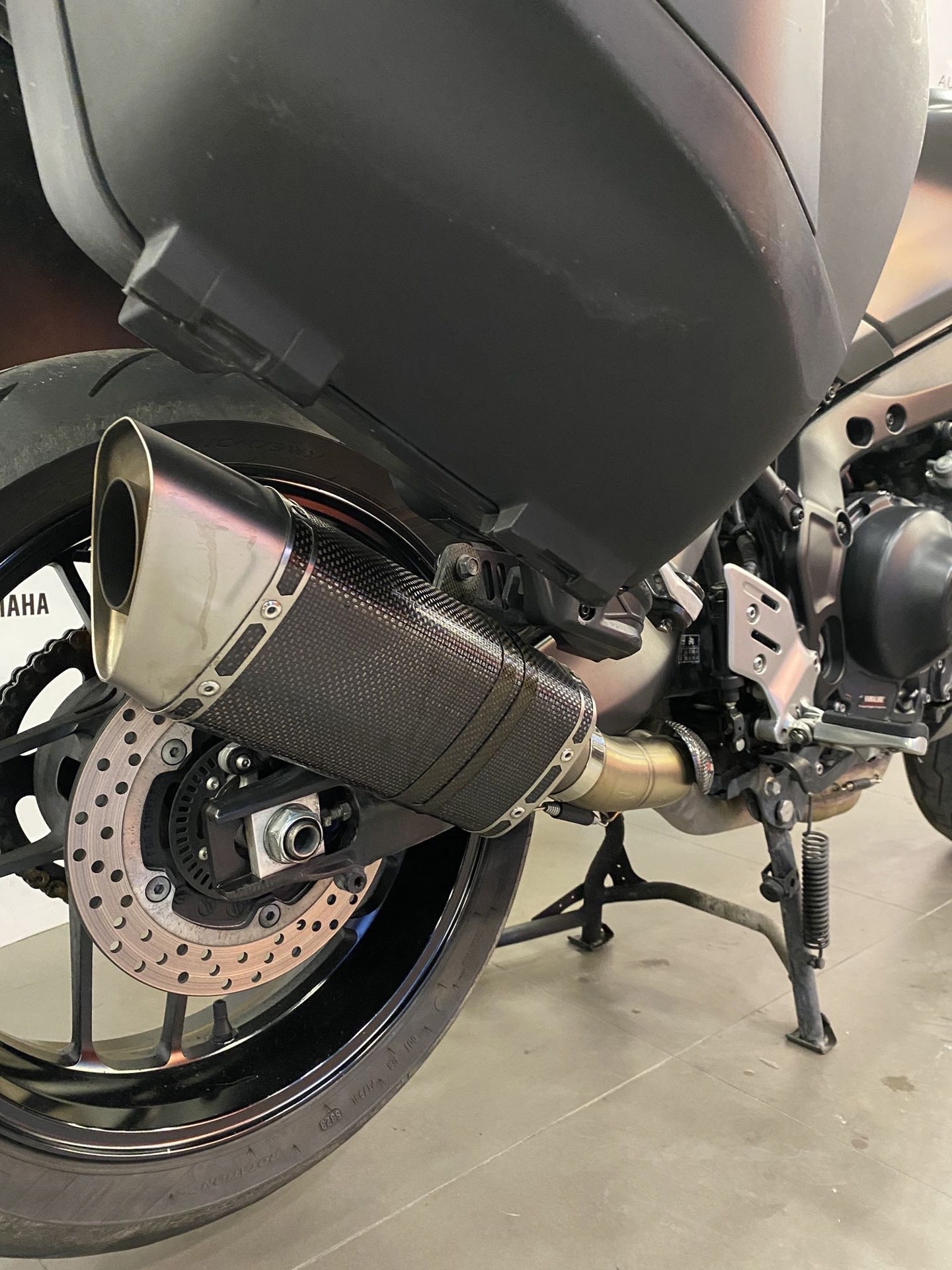 Monta: scarico completo akrapovic, borse laterali, porta targa sportivo, spechietti a manubrio.